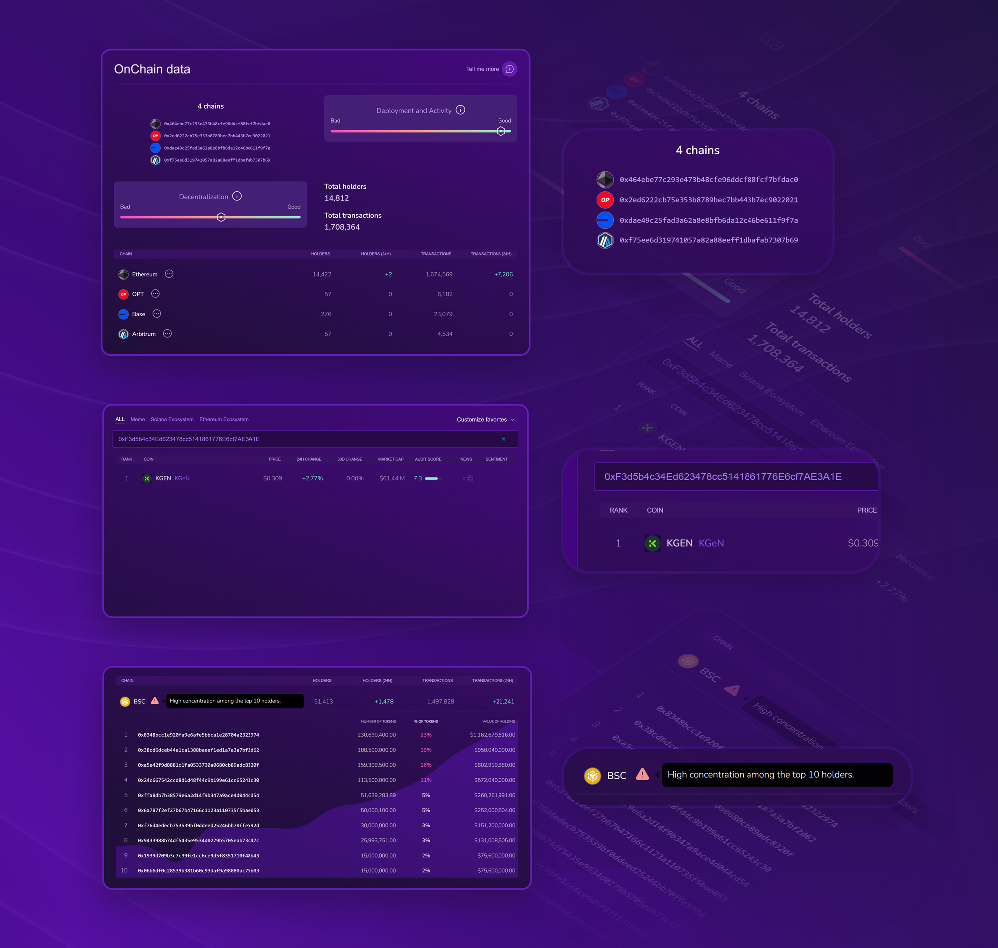 - Automatic alert when the top 10 holders own more than 50 percent of the supply.