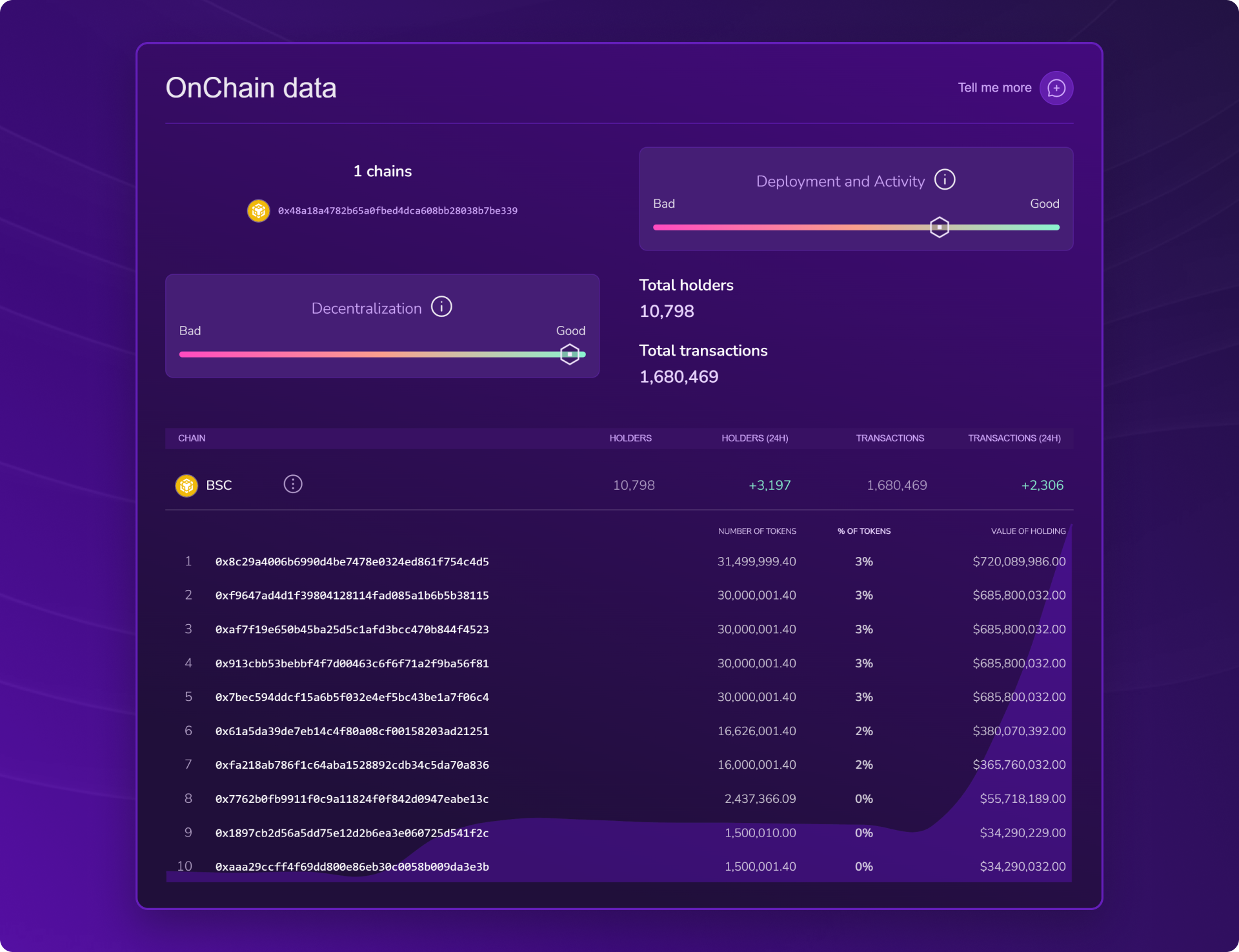 All you have to do is enter the name or address of a token to launch the complete analysis and get a clear and synthetic audit of the crypto of your choice.