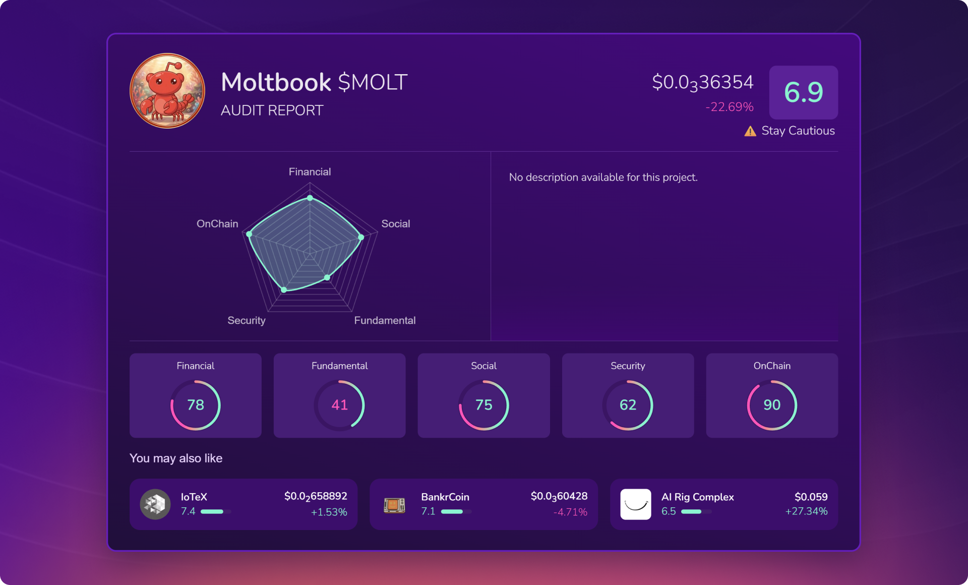 Moltbook ($MOLT) | X-Ray Score : 6.9 / 10