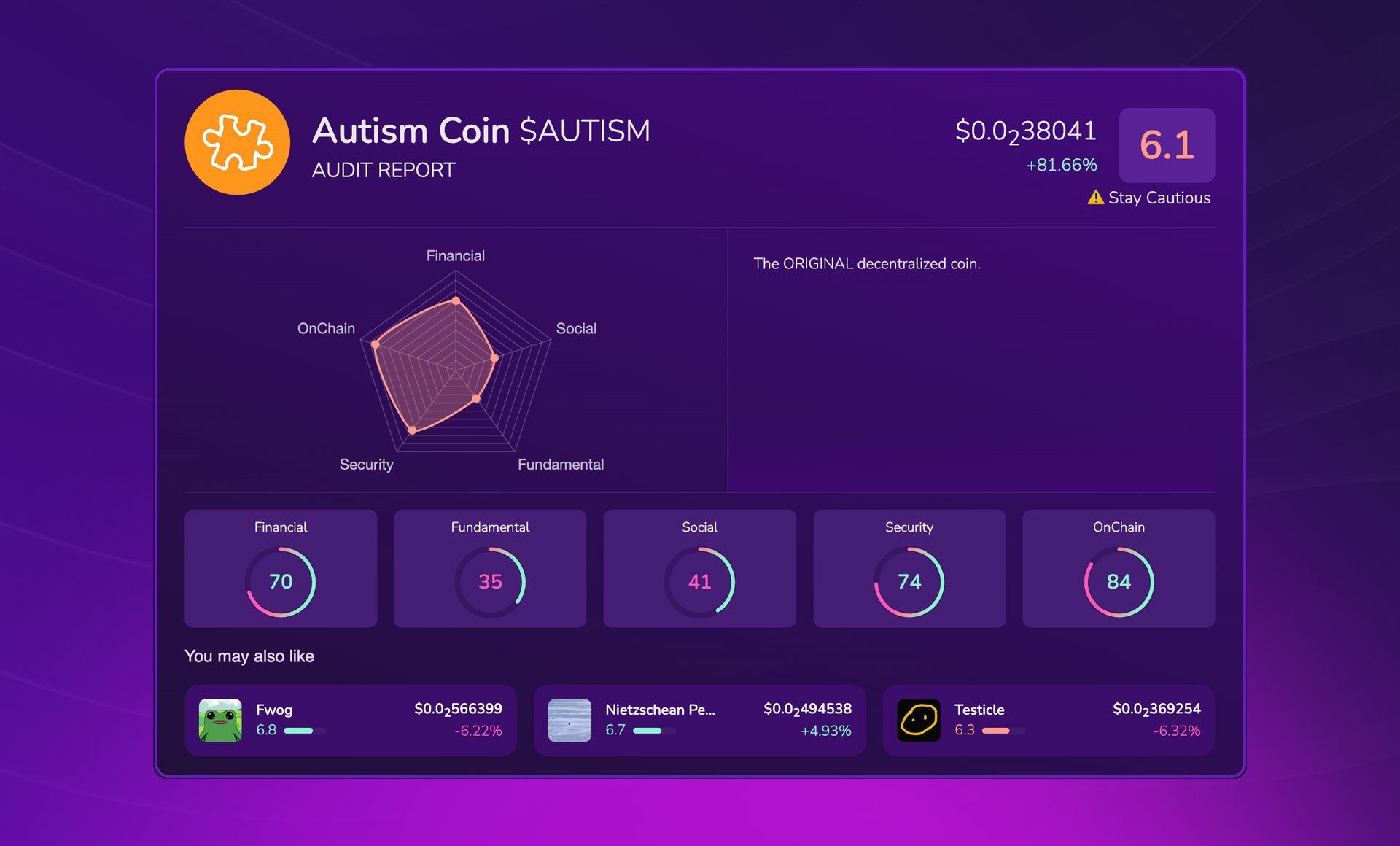 Autism Coin ($AUTISM) | X-Ray Score : 6.1 / 10