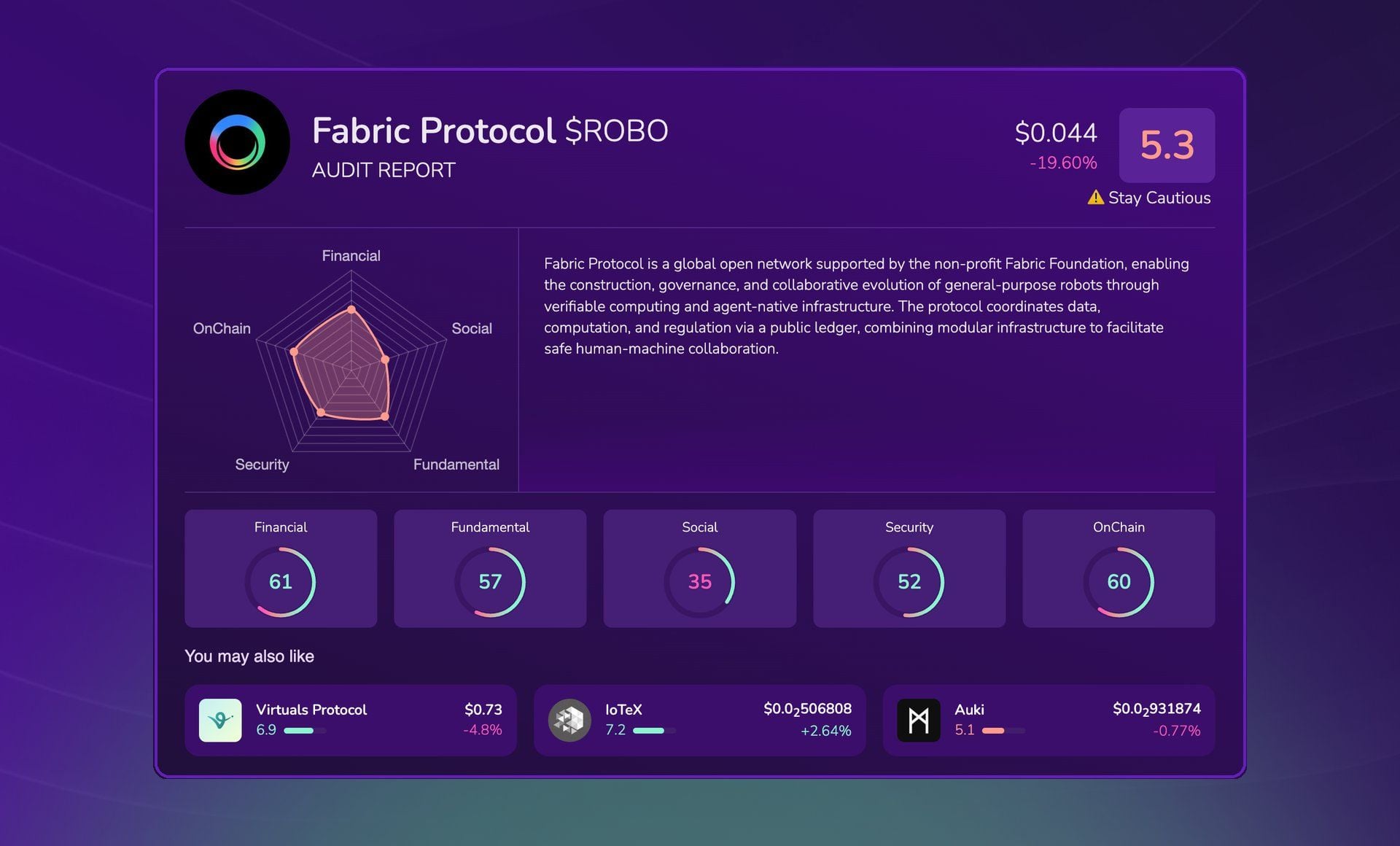 Fabric Protocol ($ROBO) | X-Ray Score : 5.3 / 10