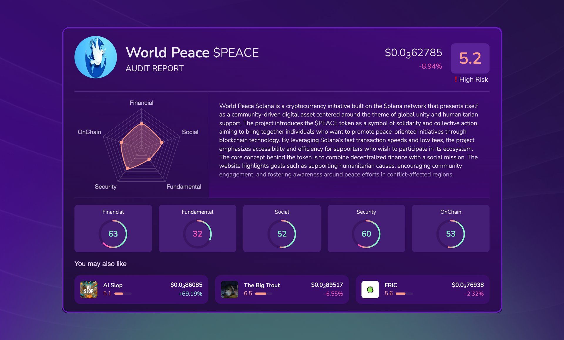 World Peace ($PEACE) | X-Ray Score : 5.2 / 10