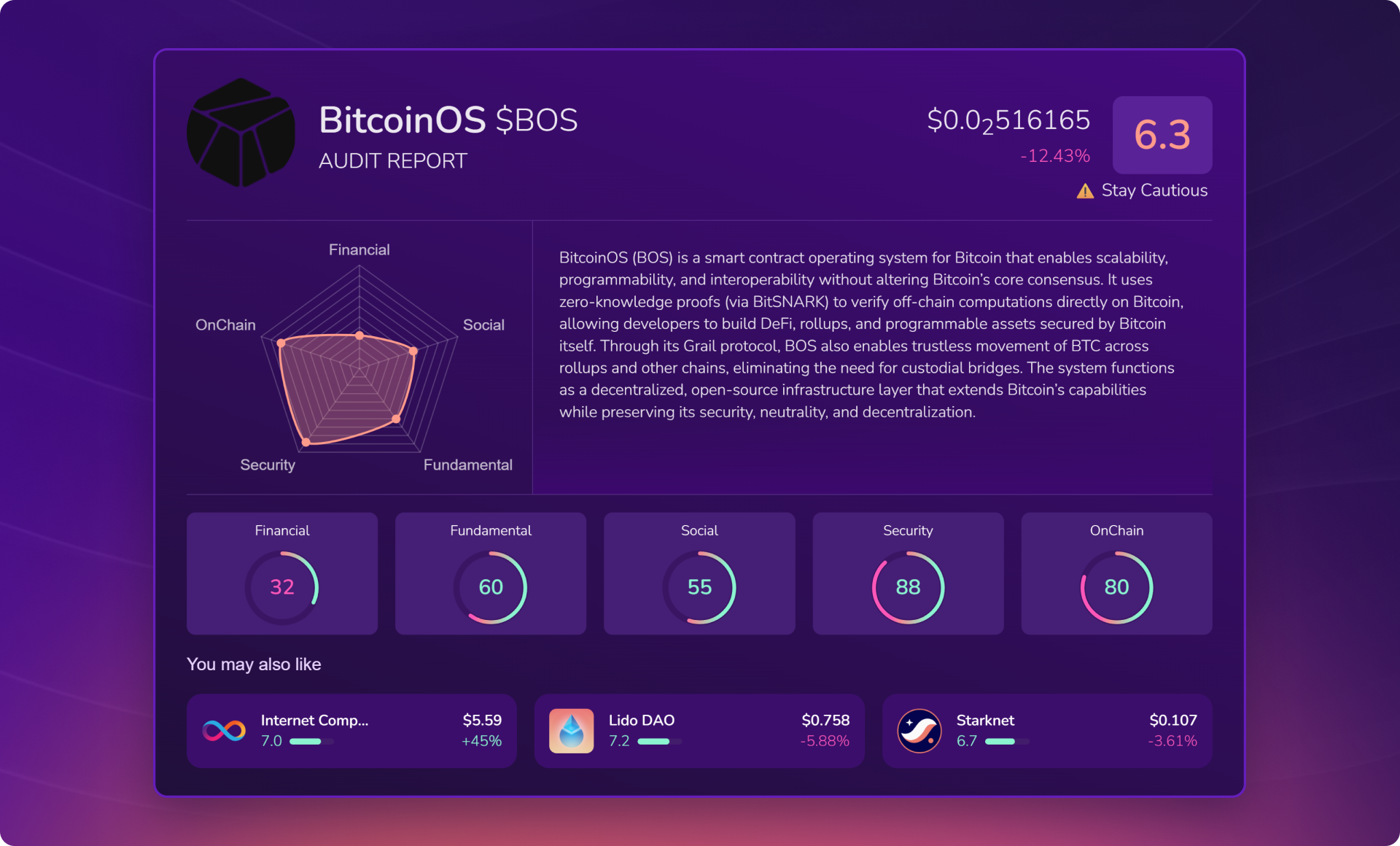 BitcoinOS ($BOS) | X-Ray Score : 6.3 / 10