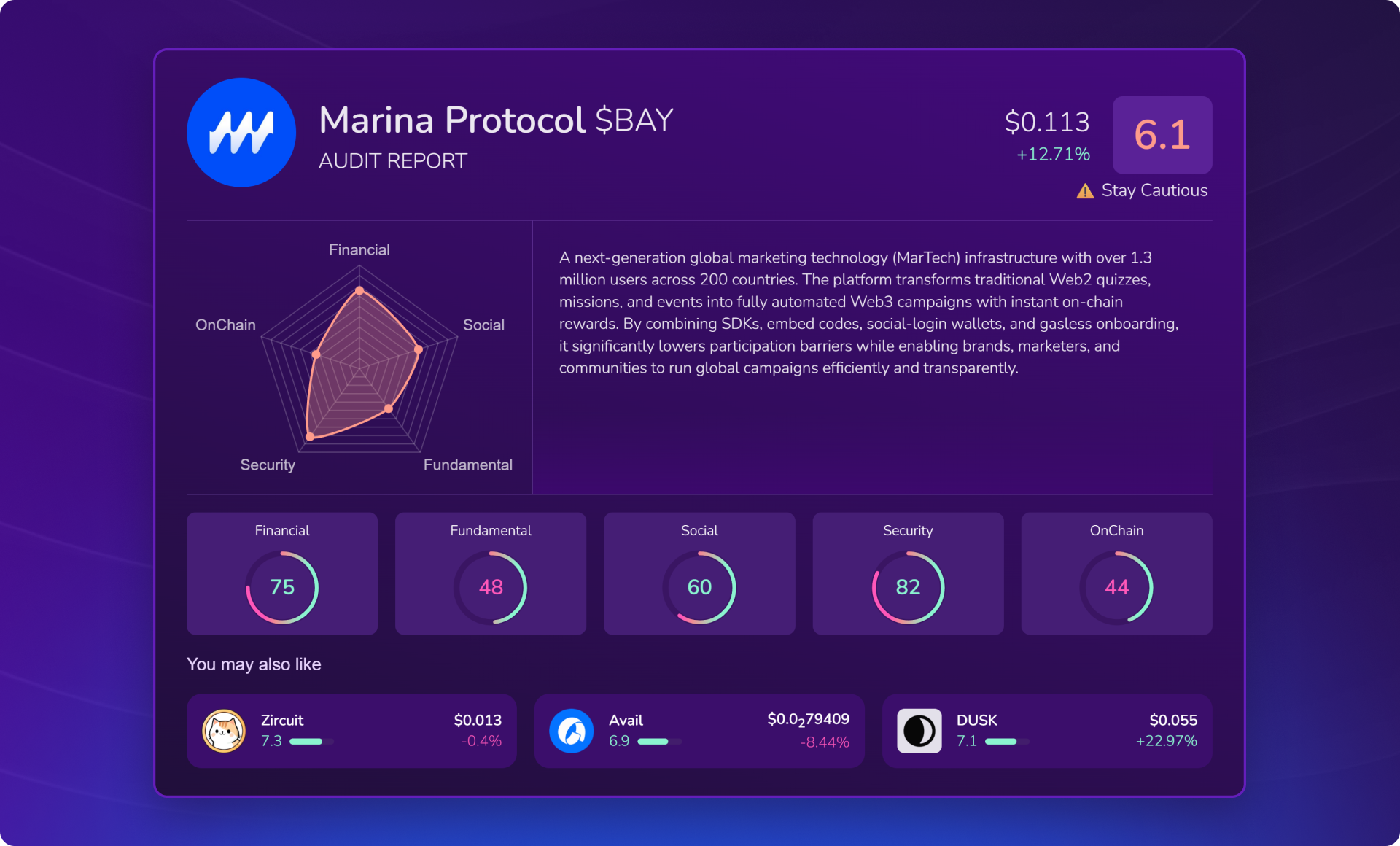 Marina Protocol ($BAY) | X-Ray Score : 6.1 / 10